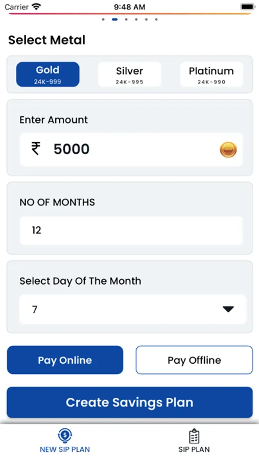 Customers can create an Monthly Saving Plan (SIP) in the App.