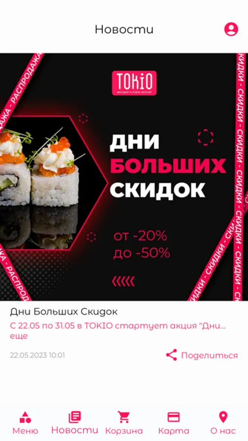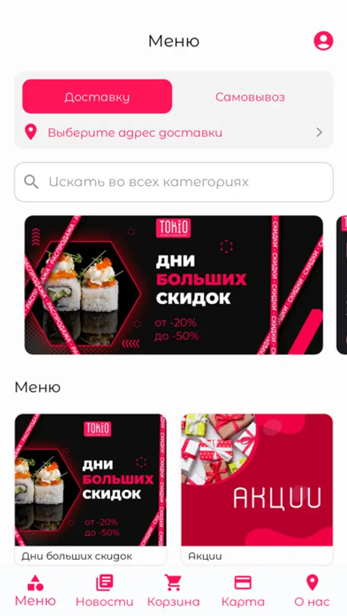 Ассортимент меню доставки TOKIO включает в себя: пиццы, сеты, холодные роллы, горячие роллы, горячие закуски, бизнес-ланчи, бургеры, супы, салаты, десерты и детские наборы.