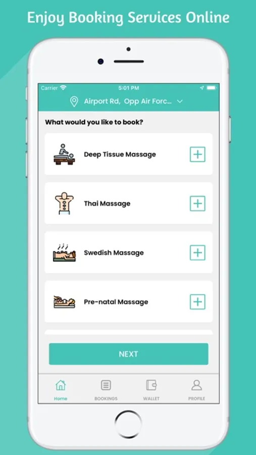 Immediate access to the app, you will be able to select from a wide range of massage catered to your need.