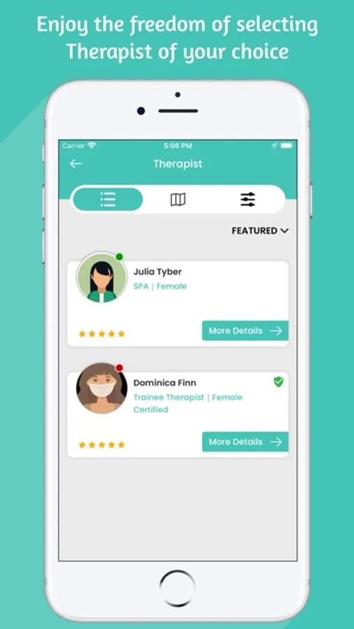 You can also select a usual therapist or a senior therapist, differentiated by the experience, customers’ reviews and ratings of the therapists.