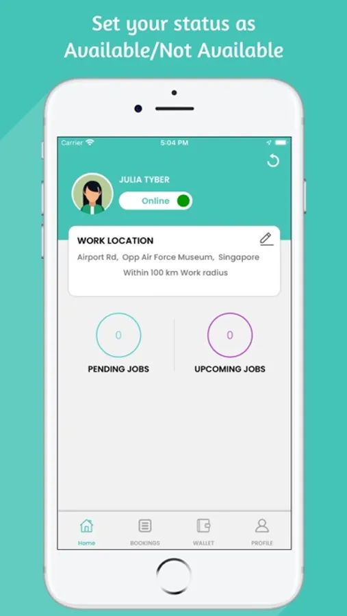 The therapist app allows therapist to select their area of service, marked by the service radius from their registered address.