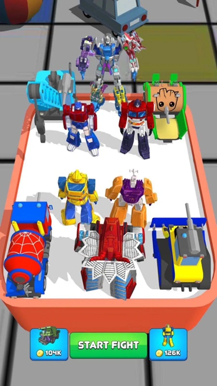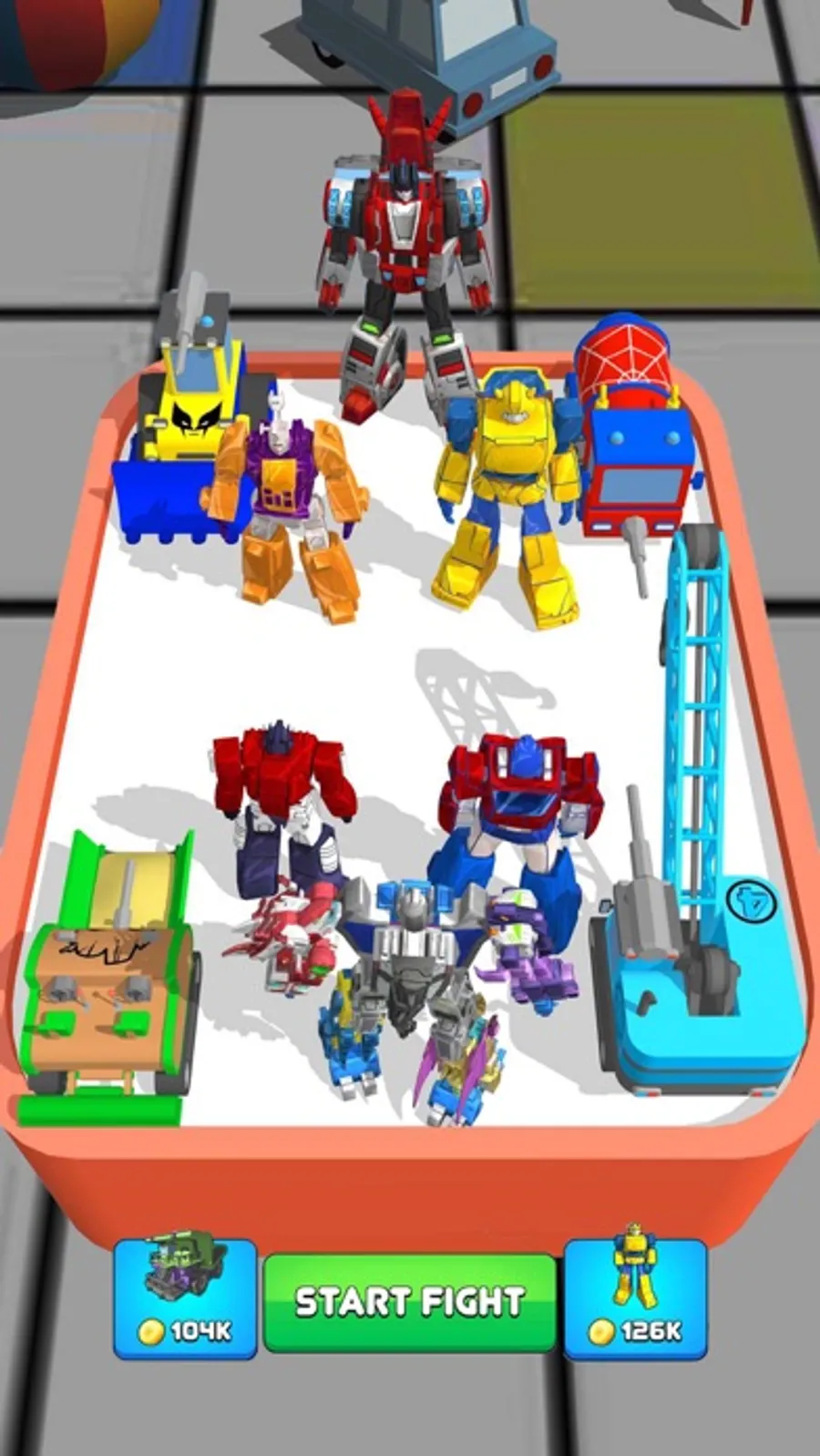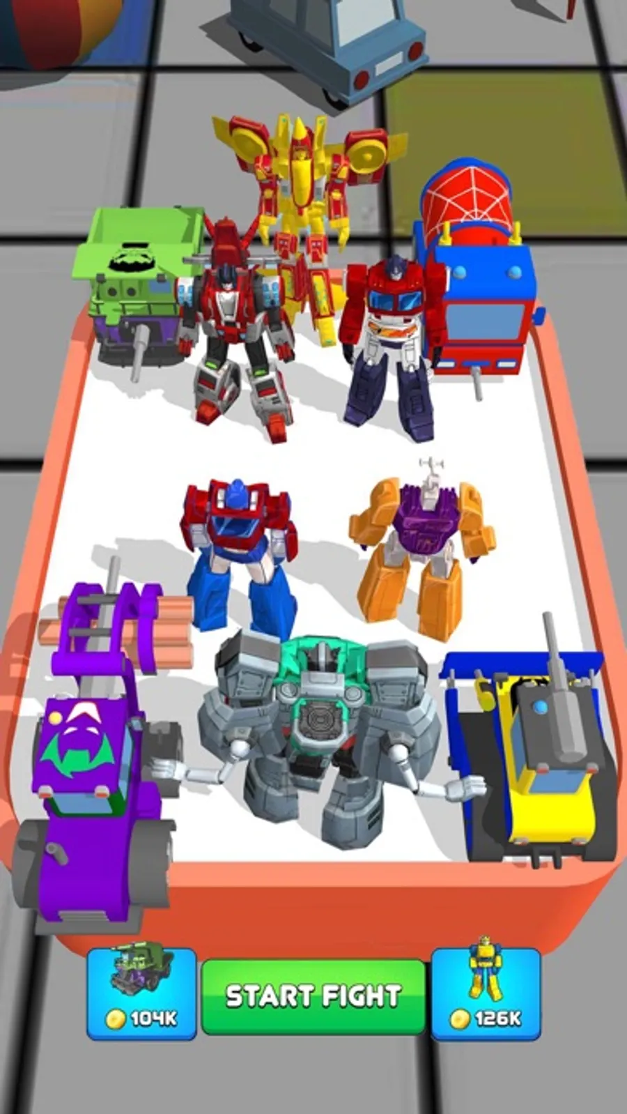 Super Robot Car Merge Master is an attractive and addictive real-time strategy game for everyone. The main goal is to beat all the enemies by combining your monsters to grow from the simple. Combine quickly and actively attack enemies to gain control of enemy positions and possess greater power than the opponent. At the same time, use your strategy and tactics to win the battle and move on to the next level.