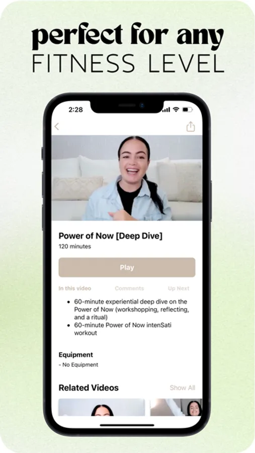 Break a sweat and boost your mood with our heart-pumping, soul-awakening workouts that fuse movement rooted in HIIT, kickboxing, and aerobics, paired with mantras, and meditation. Whether you’re a longtime intenSati warrior looking for the latest workout drop, or this is your first time and you’re looking for a hit of joy, you’re in the right place. Perfect for any fitness level.