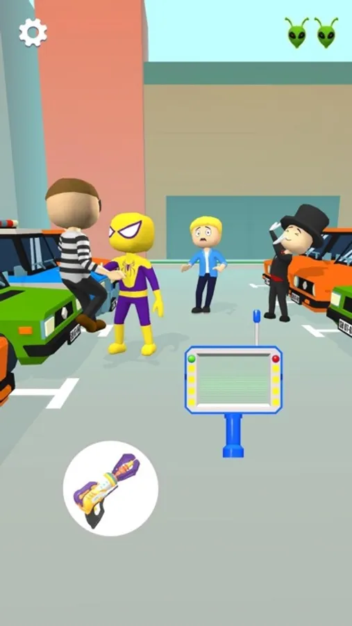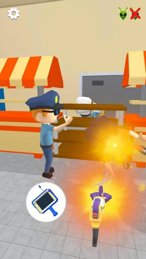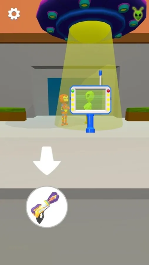 This fun game has easy gameplay. Firstly, to catch the right imposters among us, you use a piece of special scan equipment to find them. Imposters may replace your family members, neighbors, chicken, or even a tree. You should scan anything to see what is really inside it. Then use fancy guns to shoot aliens quickly and make them weaken before they return to UFOs. Be careful, you may harm real humans and lose the game if you shoot the wrong target.