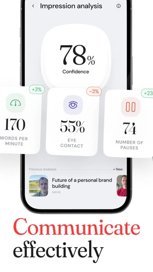 - Improve your speaking skills with cutting-edge vocal and facial impressions analysis.