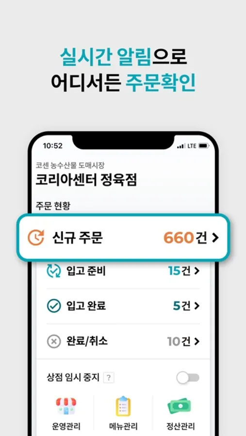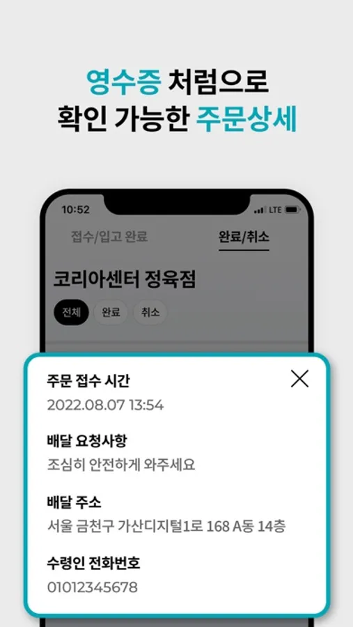언제 어디서든 휴대폰만있으면 장소에 제약없이 실시간으로 주문을 접수, 입고처리 하실 수 있습니다.