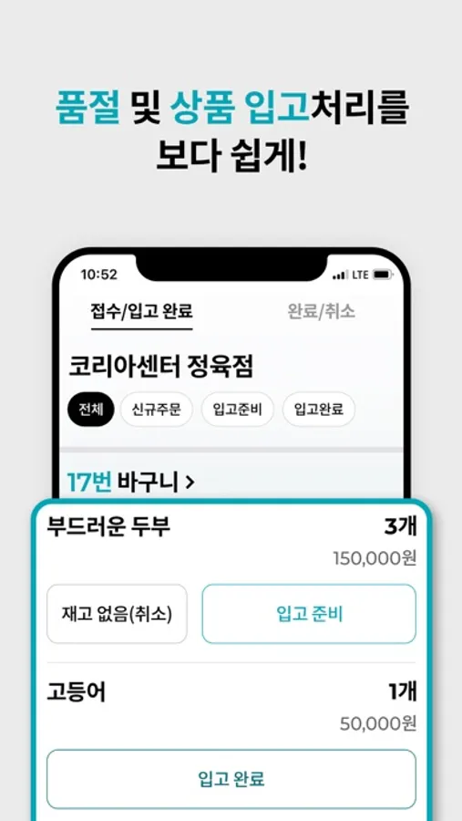 - 접수된 주문건 확인 후 빠른 입고준비 및 품절처리가 가능합니다.
