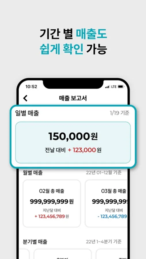 - 일별 매출/ 월별매출/ 분기별 매출을 실시간으로 확인이 가능합니다.