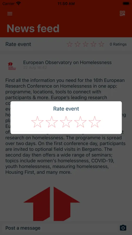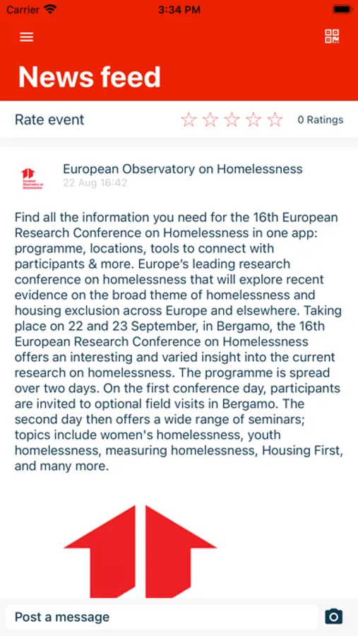 Find all the information you need for the 16th European Research Conference on Homelessness in one app: programme, locations, tools to connect with participants & more. Europe's leading research conference on homelessness that will explore recent evidence on the broad theme of homelessness and housing exclusion across Europe and elsewhere. Taking place on 22 and 23 September, in Bergamo, the 16th European Research Conference on Homelessness offers an interesting and varied insight into the current research on homelessness. The programme is spread over two days. On the first conference day, participants are invited to optional field visits in Bergamo. The second day then offers a wide range of seminars; topics include women's homelessness, youth homelessness, measuring homelessness, Housing First, and many more.