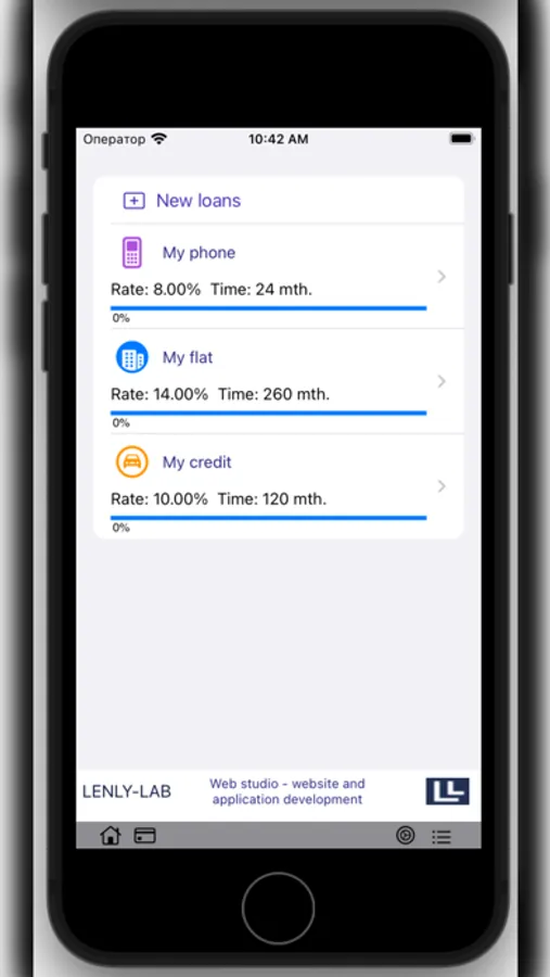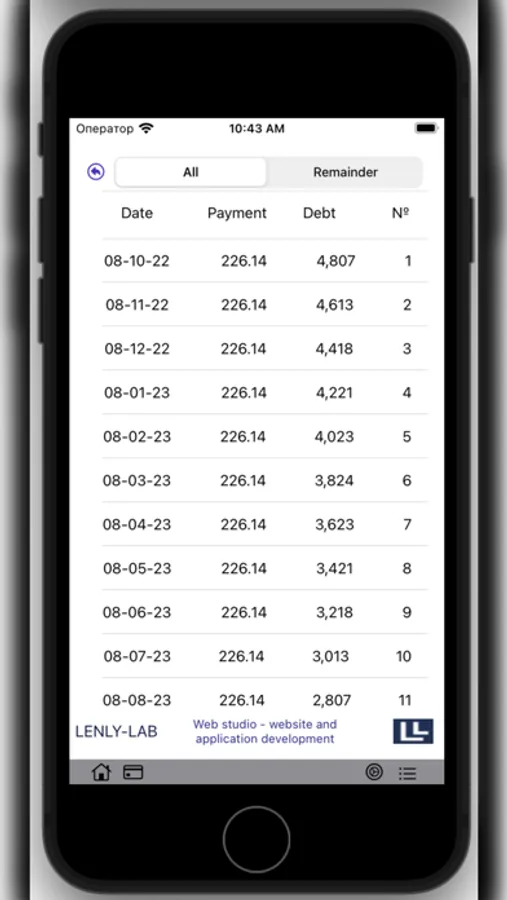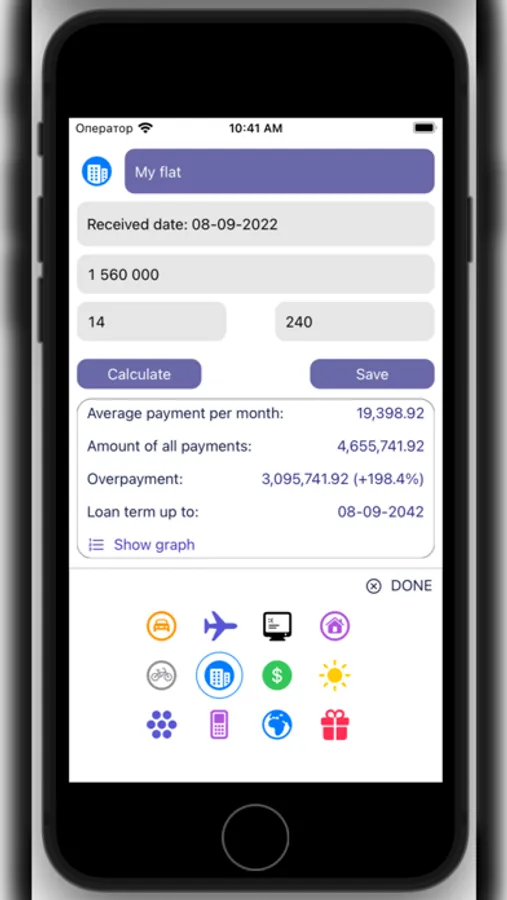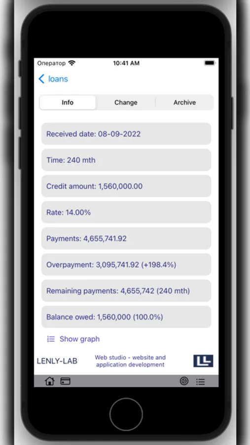 - calculate a loan by analogy with a bank, save a schedule and receive payment notifications