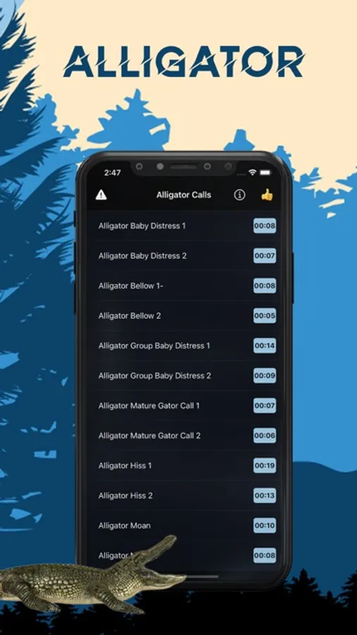One of the most important tools for a successful hunt are great alligator sounds. With this app you can be an alligator hunting pro!