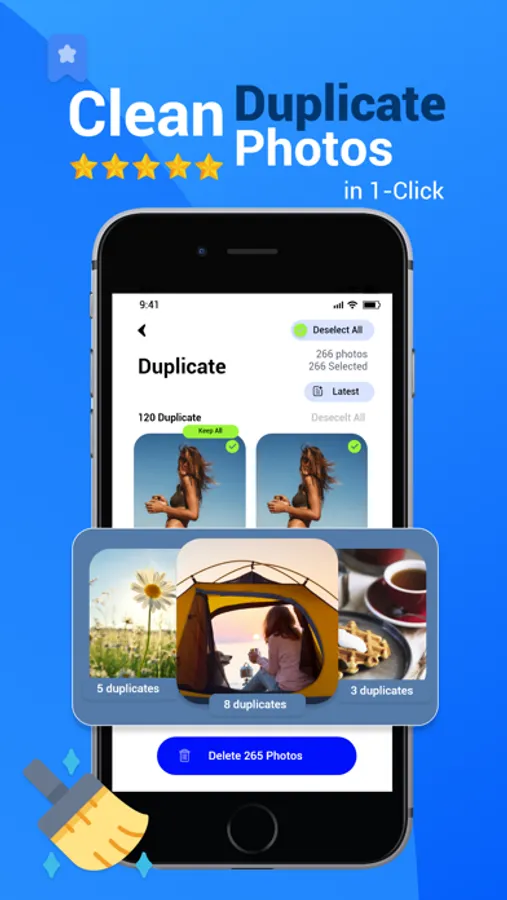 - Smart 'Fast Clean' feature to scan and remove videos and similar photos in seconds