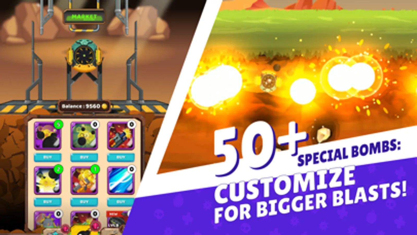 -Blast and Mine: Use your bombs to uncover minerals and discover rare resources. Every explosion can bring a big reward!