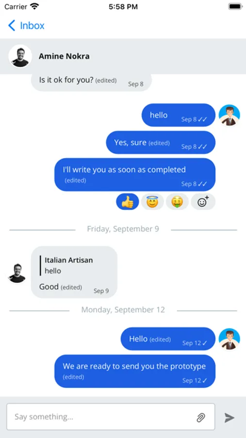 Our new app is a fast and intuitive chat that we carefully designed to help our users share a steady flux of updates throughout all the production phases of any project they are involved in on our platform.