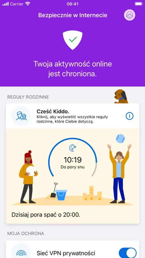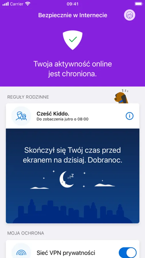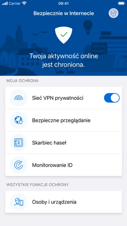 Aplikacja zapewnia bezpieczeństwo w Internecie podczas dokonywania transakcji, przeglądania stron, oglądania wideo, słuchania muzyki oraz komunikacji z rodziną i przyjaciółmi.