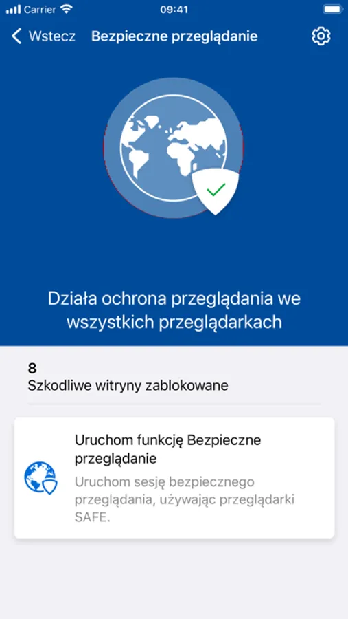 Dodatkowo wbudowana przeglądarka chroni przed niebezpiecznymi stronami internetowymi zanim na nie wejdziesz. Dzięki ochronie bankowości masz pewność, że korzystasz z prawdziwych, zweryfikowanych stron banków.