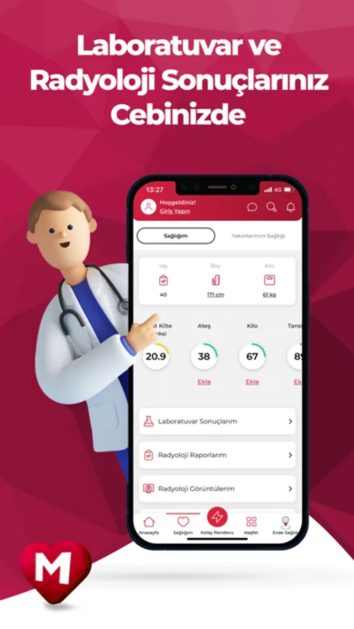* Access to all your health data on a single platform by uploading laboratory results, radiology reports and images, your prescriptions and examination reports received from external medical centers as well.