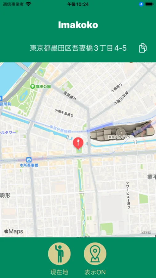 「現在地の住所を簡単に取得できるアプリ-Imakoko」