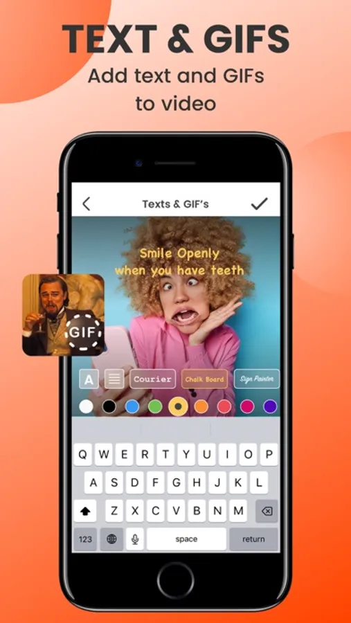 • ADD TEXT & GIFS - Insert text into your videos or add cool GIFs.