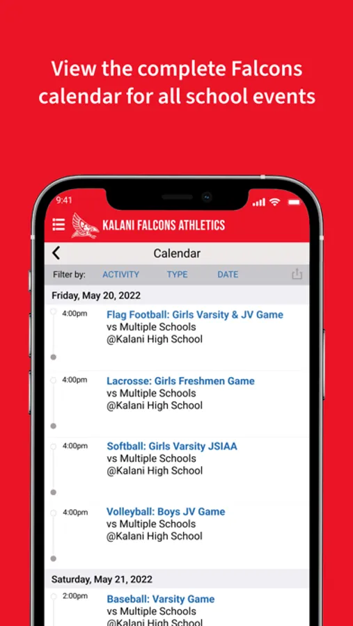 The Kalani Falcons Athletics App is your source for all Falcons activities. Schedules, Rosters, Scores, Team Info, Articles, Photo galleries, and Upcoming Events are all available through our Kalani Falcons Athletics app.