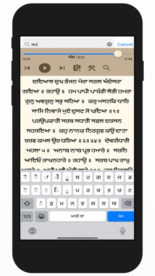Word to Word synchronization of audio and text of Guru Granth Sahib. The voice has been tutored and every aspect taken care of.