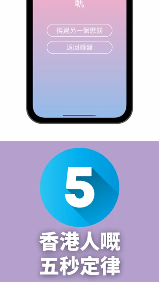- 五秒內必須答問題,否則要接受懲罰(app內設有預設懲罰,亦可由眾人商議想出)
