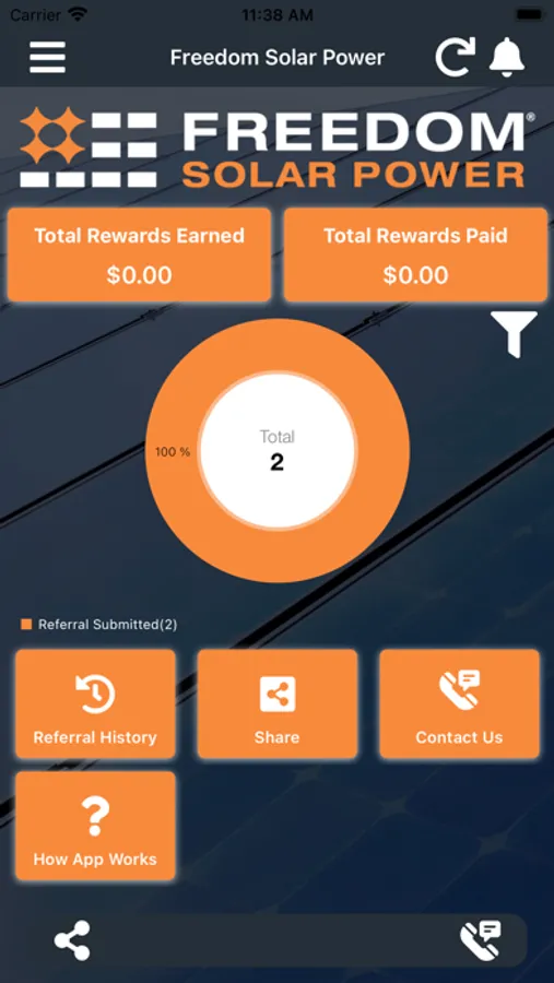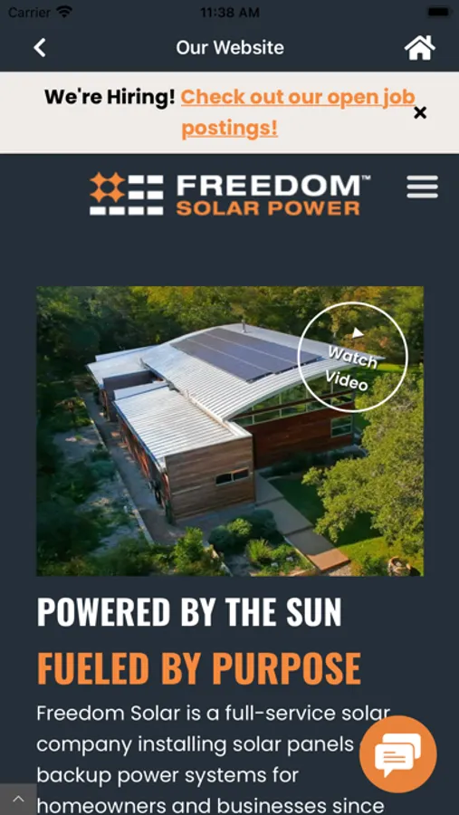 Freedom Solar Power is a free app available for anyone to download and is used for those that want to communicate with Freedom Solar Power. It is as simple as downloading the App and register as a user. Once registered, you can begin communicating right away. We will reach out to you via push notifications and in-app messaging to improve your overall buying experience. Once you purchase your new Product from Freedom Solar Power, feel free to write a review. We appreciate your business.