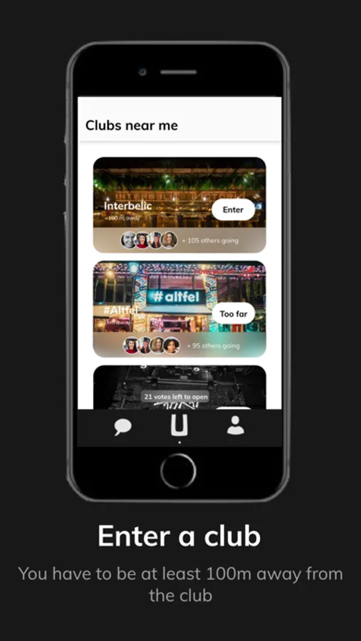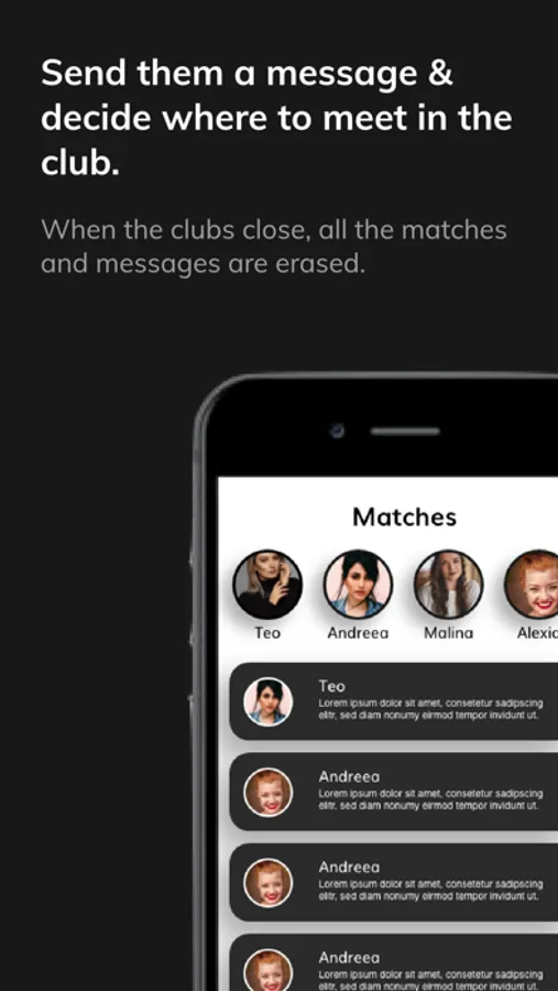 The dating app that lets you match only with people inside the club you are in and meet & talk that same night.