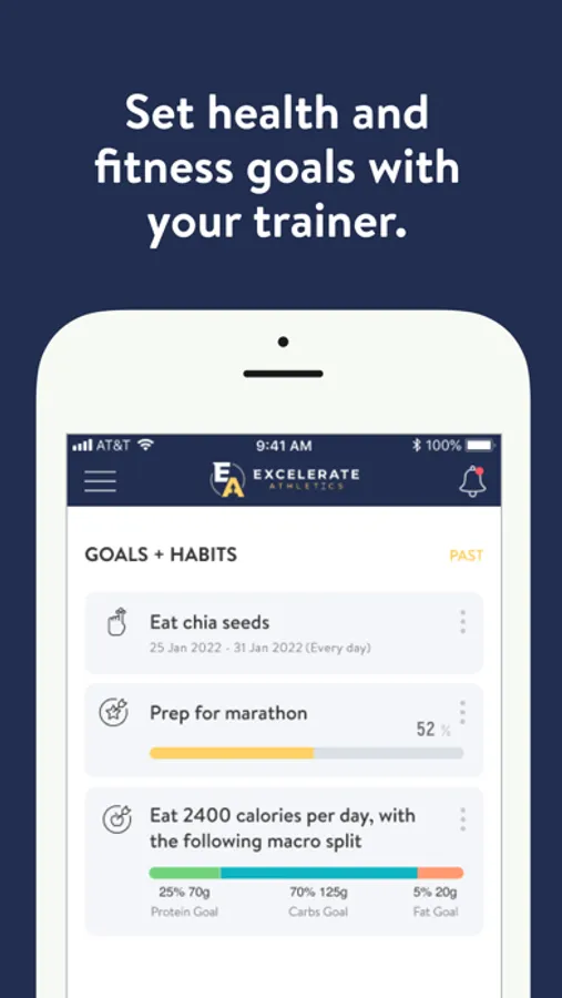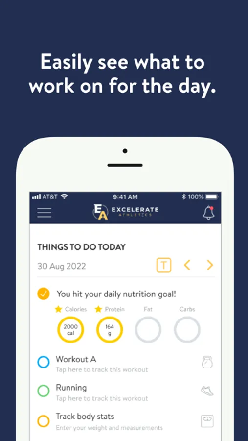 With the Excelerate Athletics App, you will have access to your customized workout program designed specifically to help you reach your fitness and health goals! You can follow & track your workouts, your nutrition, your lifestyle habits, measurements and results. Pairing this with our 1:1 coaching, your coach will be able to see how you are progressing and make real time adjustments to your protocols to ensure you are seeing the changes you desire!