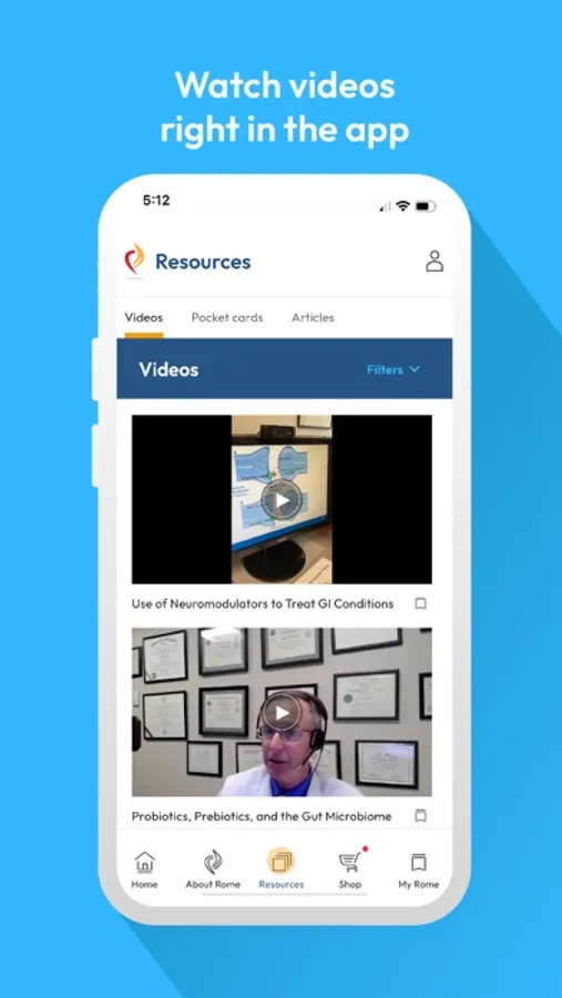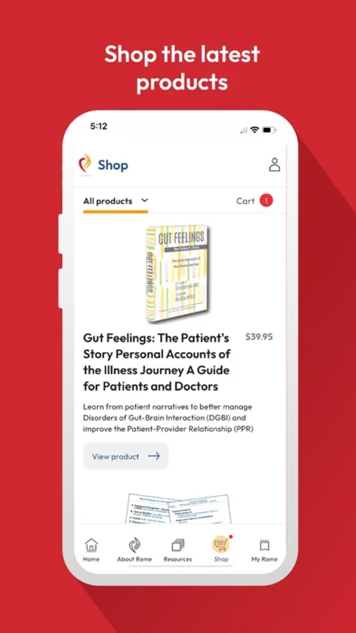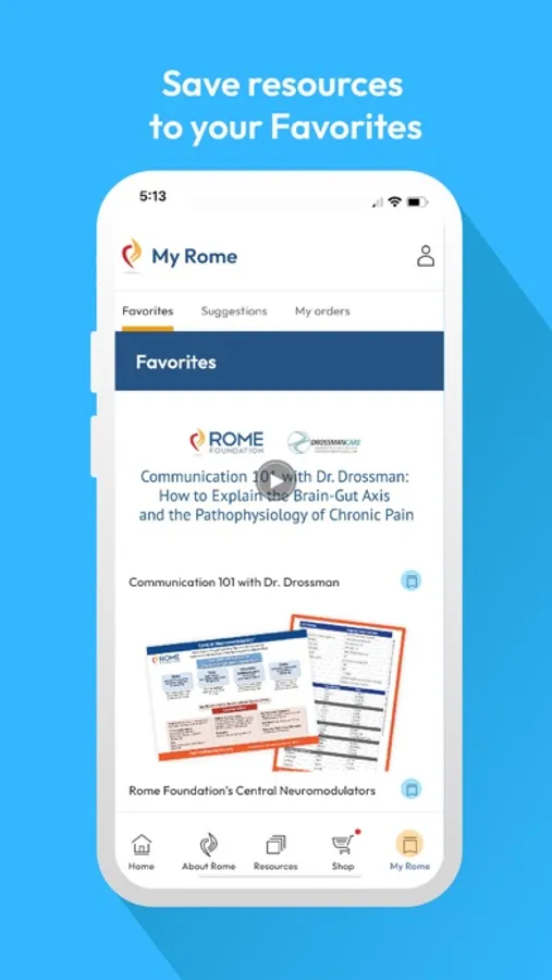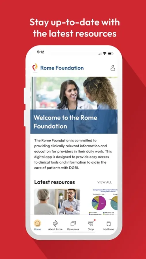 The Rome Foundation app gives users access to free resources for education, and medical diagnostics related to GI disorders. It also also has a marketplace for Books, algorithm slide sets, and other physical products.