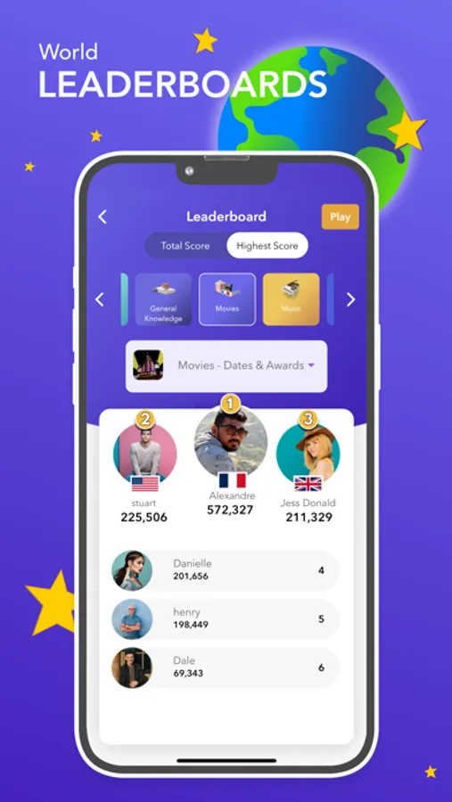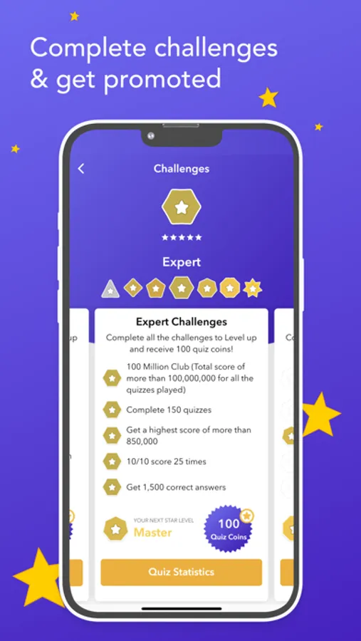 The aim is to rank as high as possible on the world leaderboards and also level up by completing challenges to eventually become a QUIZSTAR