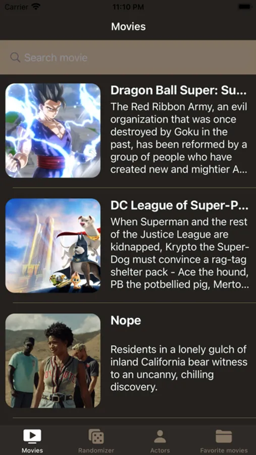You can ask the app to recommend a random movie to watch. Also, the application will allow you to search, select and save your favorite movies.