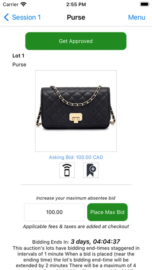 • Browsing of auction catalogs with photos, descriptions and easy use absentee bidding