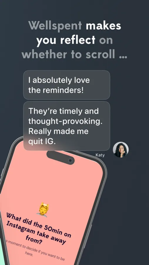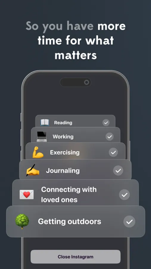 - Get short and sweet full-screen check-ins that get you to stop scrolling