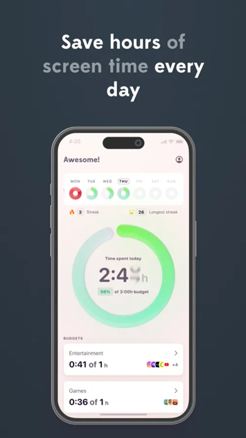 - Set your budgets for problem apps so we know when to give you a full-screen check-ins