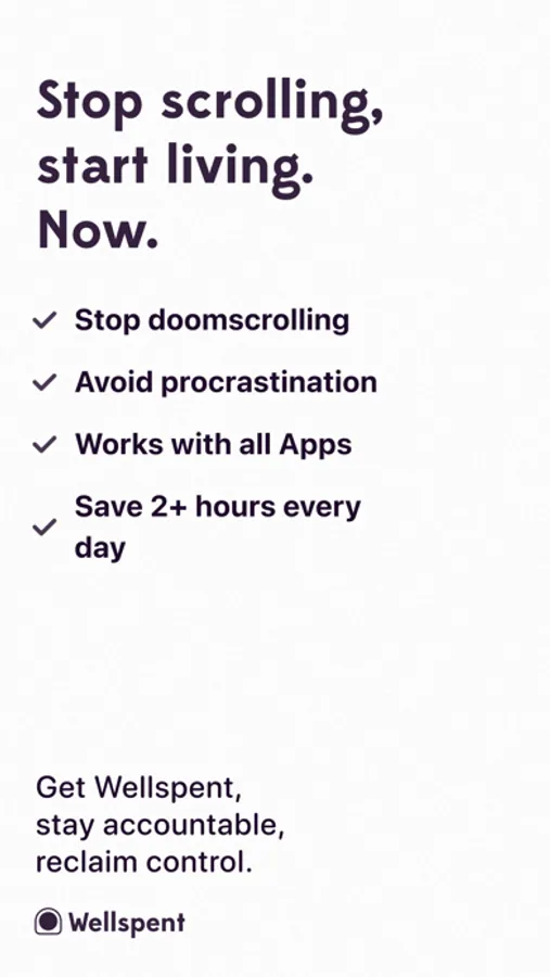 Wellspent is designed to help you find a healthy balance between productivity and play. Paired with your input, our tool creates the recipe for supporting you best and we inject your phone time with science-backed methods designed to actually help you break the cycle of scroll addiction. It’s the future of screen time self-control.