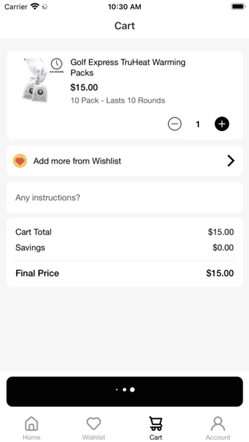 - With our WISHLIST, users will be able to save their favorite golf products, and it will be readily available to them with the navigation widget at the bottom of the page. Users will be able to see their list of favorite products to check out in the future:)