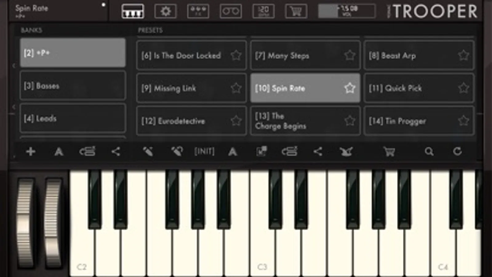 Many of Trooper’s parameters are meant to interact and meld together in novel ways. For example, the oscillator volumes —beyond just acting as mere blend knobs— vary the characteristics of the basic signal depending on how far they are “pushed". The emphasis is on providing warm and round basic tones with lots of variable harmonic content.