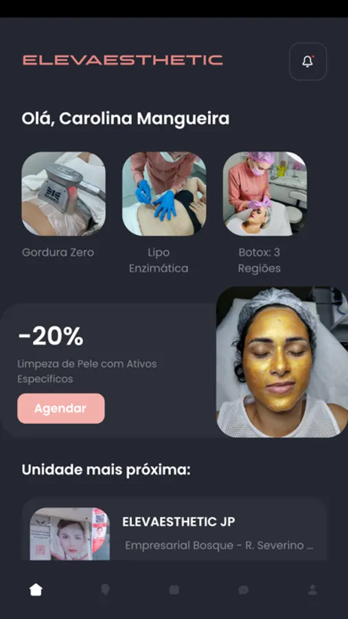 Além disso, o aplicativo também envia notificações sobre ofertas, promoções, lembretes e informações importantes sobre os tratamentos em andamento, garantindo que os clientes estejam sempre informados e atualizados sobre tudo o que está acontecendo na ELEVAESTHETIC.