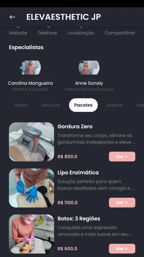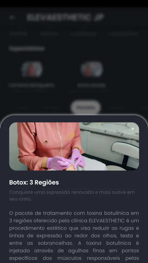 Outra funcionalidade interessante do app é o acesso aos tratamentos estéticos, pacotes e serviços oferecidos pelas clínicas ELEVAESTHETIC, tudo em um só lugar e de fácil navegação. Com apenas alguns cliques, os clientes podem conhecer os tratamentos disponíveis, comparar preços e escolher o que melhor atende suas necessidades.