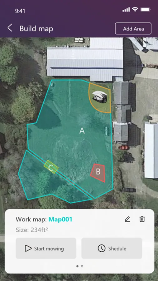 1、Create multiple maps as well as obstacle areas and intelligently edit and manage them. Greatly improve mowing efficiency.