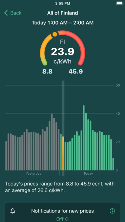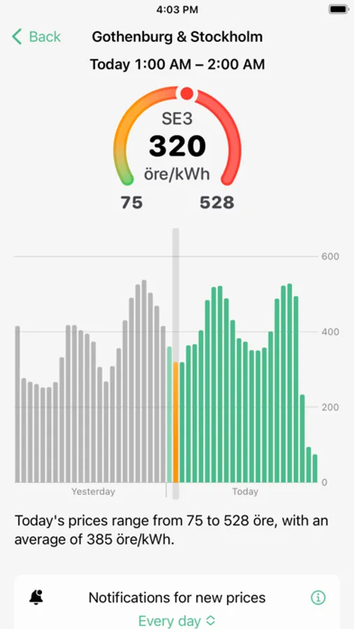 See hourly electricity prices in European countries in the app, or use the widgets to see prices directly on your Lock Screen.