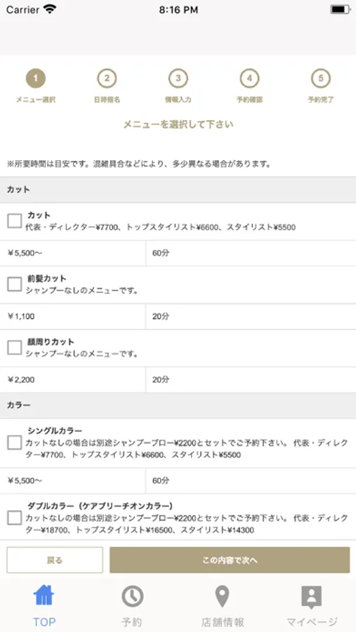 予約状況の確認やキャンセルがマイページ上から行えます。スタッフの登録が出来るので前もって担当者を登録しておけばマイページからスムーズな指名予約が可能です。