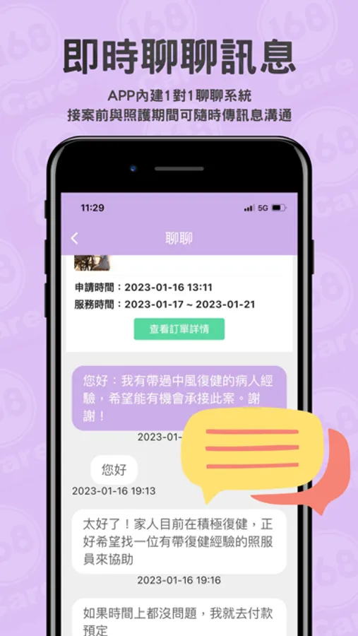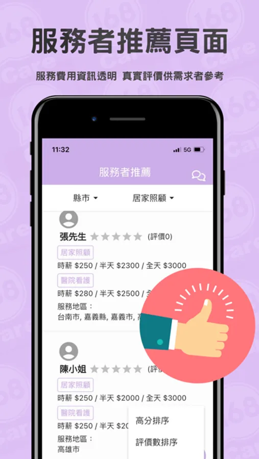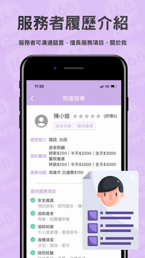 您可以依照被照顧者的狀況填寫需求單,也可以直接瀏覽服務者的相關資訊,快速的尋找可接案的服務者。我們希望透過Care168APP ,能讓找看護變得輕鬆又簡單!