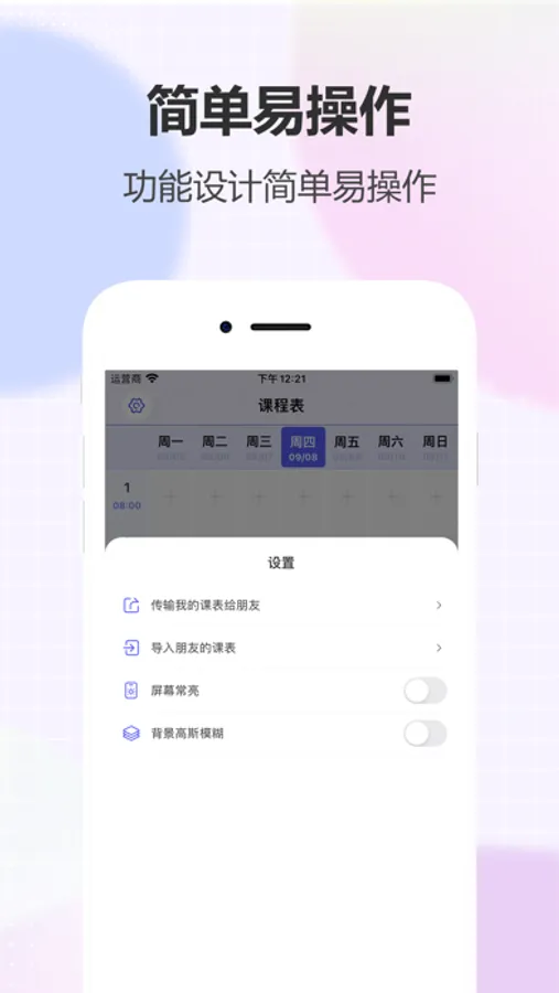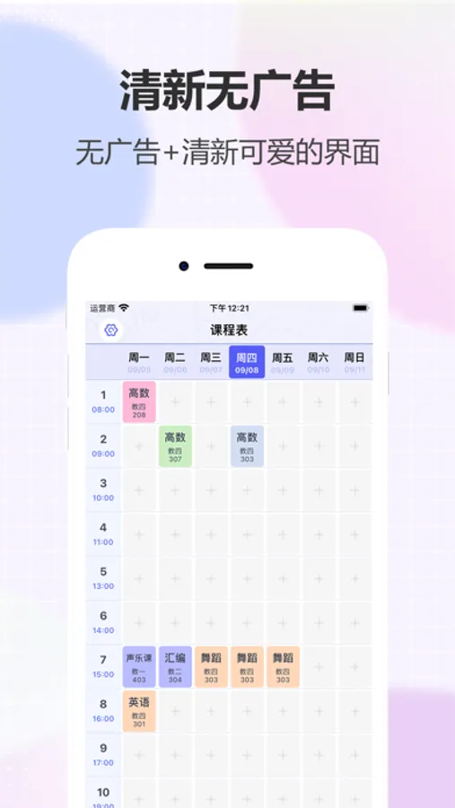 为大学生开发的课程表app,可以记录学期课程,还可以分享给同学哦