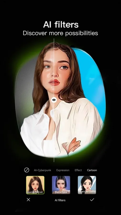 Say goodbye to flat features with several simple taps. You will find a new self that better fits you.