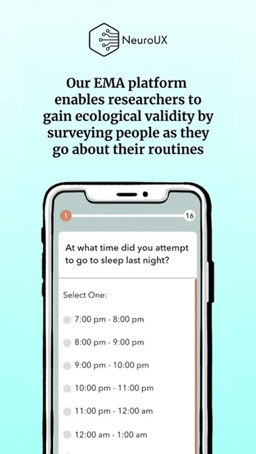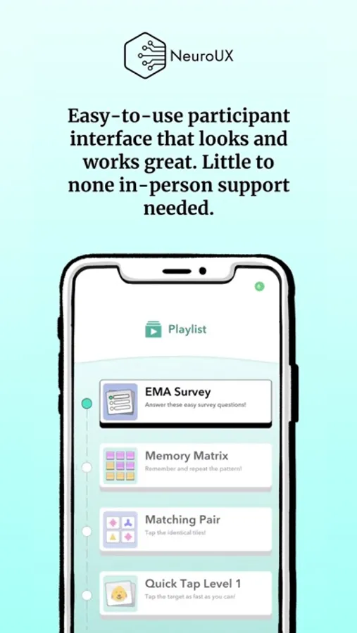 Traditional randomised controlled trials (RCTs) often do not adequately capture change during treatment, largely due to limitation inherent to RCT methodology. One such limitation is the use of infrequently administered outcome assessments, which do not have the precision to predict or measure outcomes. These measures often do not possess the temporal resolution necessary to assess individual-level change in neurobehavioral symptoms that vary by time and context (e.g., cognitive performance different at home vs. in the clinic). The NeuroUX app is designed to make it easier for researchers to use mobile technologies to study cognitive processes over time, in the “real world.” Our platform is currently being used in several federally-funded studies, including RCTs. The NeuroUX app supports: