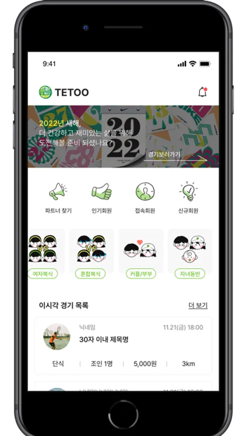 테니스투게더(테투)는 테니스 동호인들을 위한 게임, 파트너, 학원/대관 찾기 어플입니다.