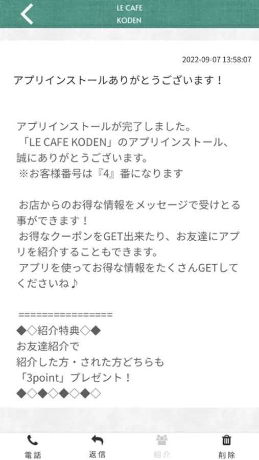 LECAFEKODENのアプリをSNSを通じてお友達に紹介する事ができます。