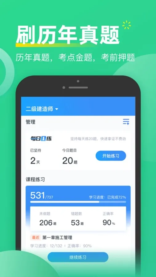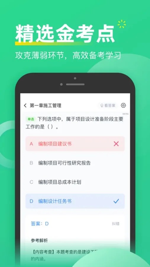 “历年真题+模拟考点金题”题库完整版 实时更新:一建、二建、造价等历年真题试卷,所有真题“免费练+考点精讲+精编解析+章节练习”,面对错题及时解决搞懂,充分利用碎片化时间来提高知识点的熟练程度。